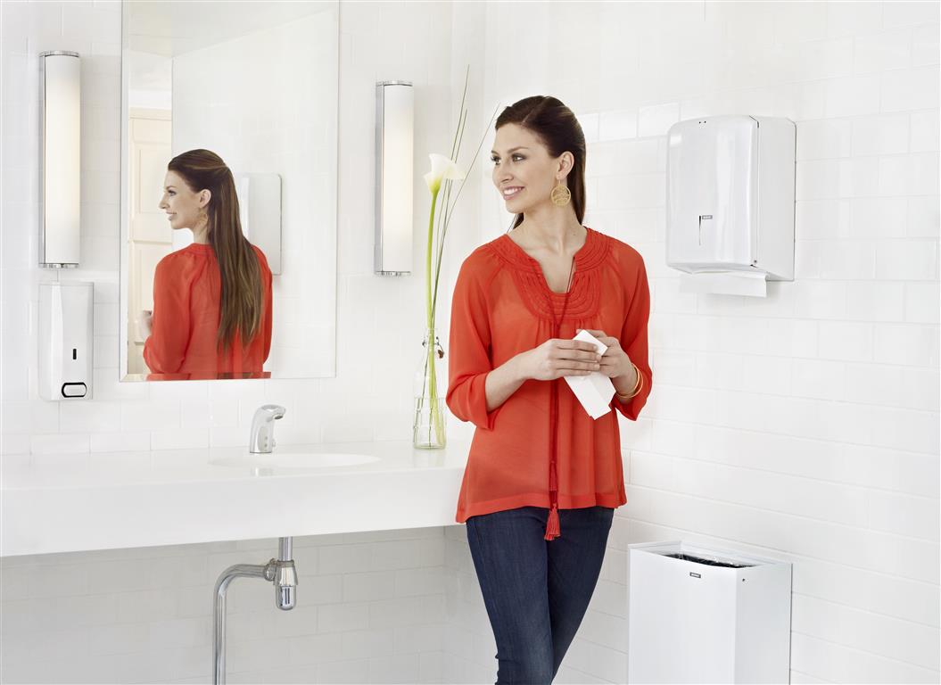 Katrin 988113 to solidny i estetyczny dozownik do ręczników składanych, zaprojektowany z myślą o obiektach, w których liczy się trwałość, higiena i nowoczesny wygląd wyposażenia sanitarnego.