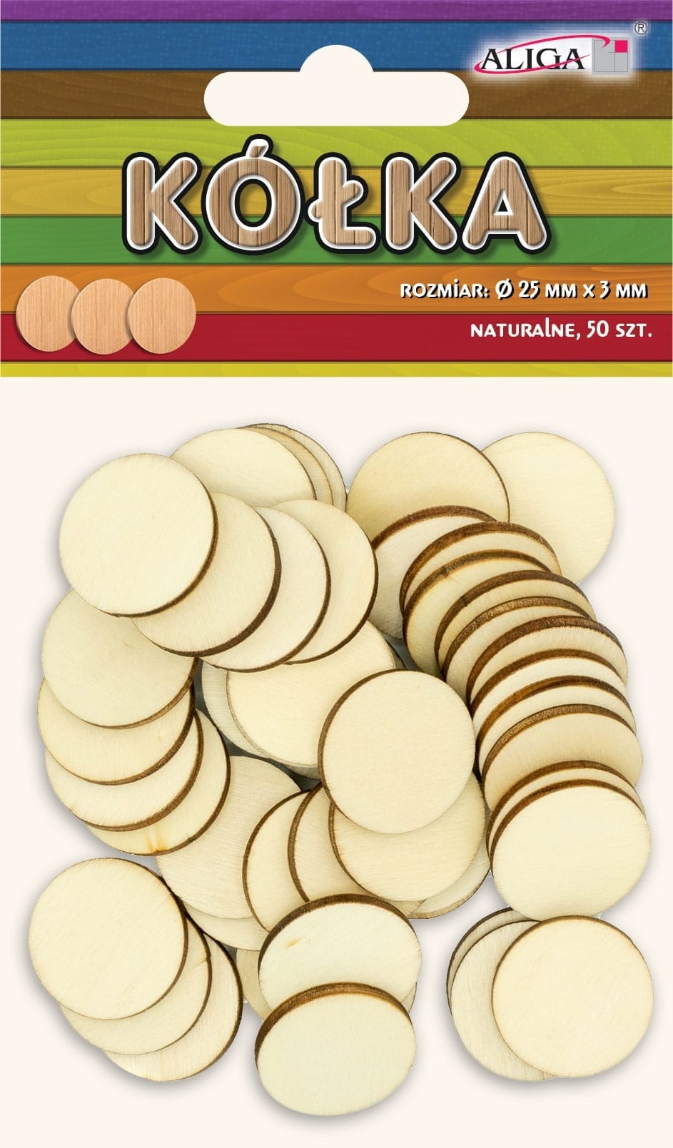 Kółka naturalne, rozm. Ø 25 x 3 mm 50 szt