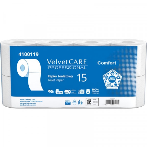 PAPIER TOALETOWY CELULOZOWY VELVET PROFESSIONAL, 2-WARSTWOWY, 138 LISTKÓW, 15M, 8SZT., BIAŁY*5032*
