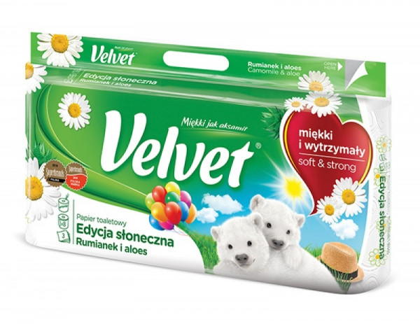 PAPIER TOALETOWY CELULOZOWY VELVET RUMIANEK I ALOES, 3-WARSTWOWY,8SZT., BIAŁY*4684*