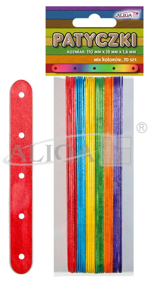 Patyczki kreatywne drewniane konstrukcyjne, płaskie 30szt 1,6x18x150mm. Mix kolorów