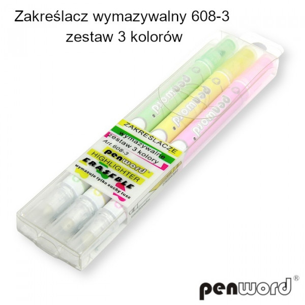 ZAKREŚLACZ WYMAZYWALNY PASTELOWY ZESTAW 3 KOLORÓW 2w1 608-3 *9301*
