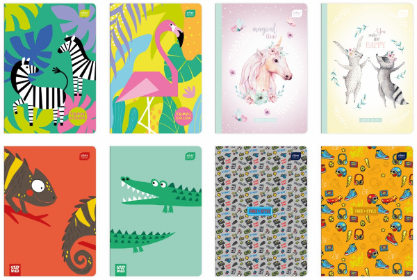 Zeszyt w linie 16 kartek. Mix wzorów okładek A5*1416*
