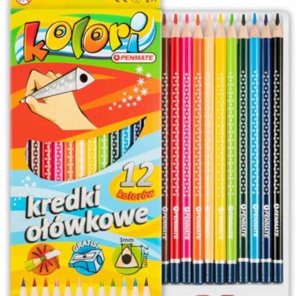 Kredki ołówkowe 12 kolorów trójkątne z temperówką *6463*