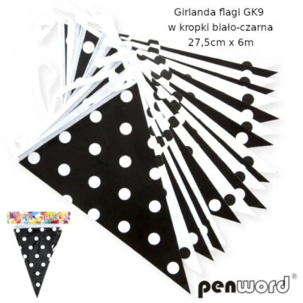 GIRLANDA FLAGI GK9 W KROPKI BIAŁO-CZARNA 27,5cmx6m *1916*