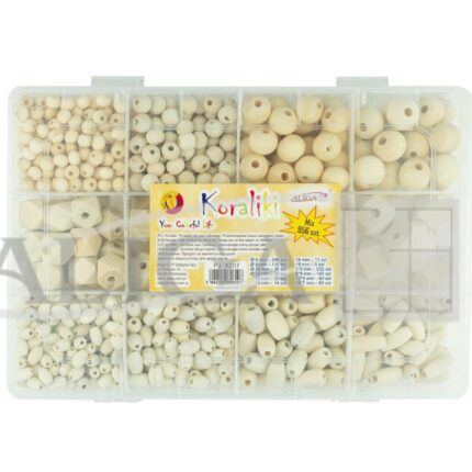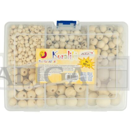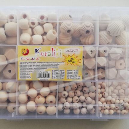 Koraliki drweniane, zestaw 507szt. w zamykanym pudełku PJ-8269