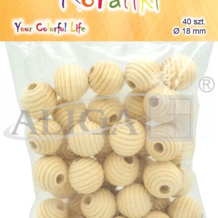 Koraliki drewniane frezowane 18mm, otwór 5mm 40szt PJ-0812