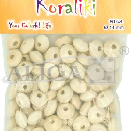 Koraliki drewniane płaskie 14/8mm, otwór 5mm 80szt PJ-0782