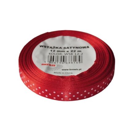 Wstążka satynowa w kropki czerwona 12mm/22m. *6169*