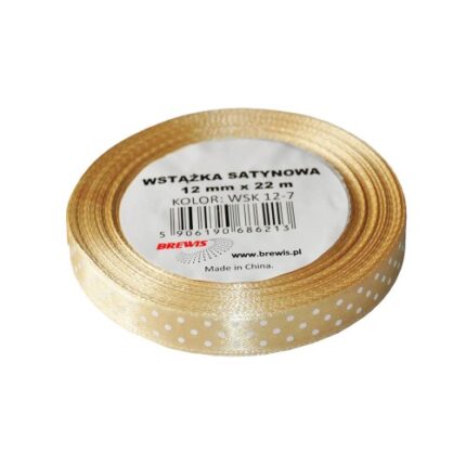 Wstążka satynowa w kropki złota 12mm/22m. *6213*